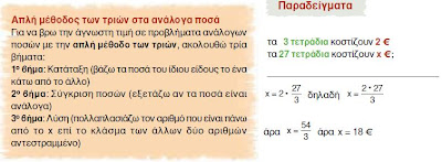 "Την απλή μέθοδο των τριών": τη μέθοδο δηλαδή, όπου από τις τρεις γνωστές τιμές βρίσκουμε την τέταρτη.